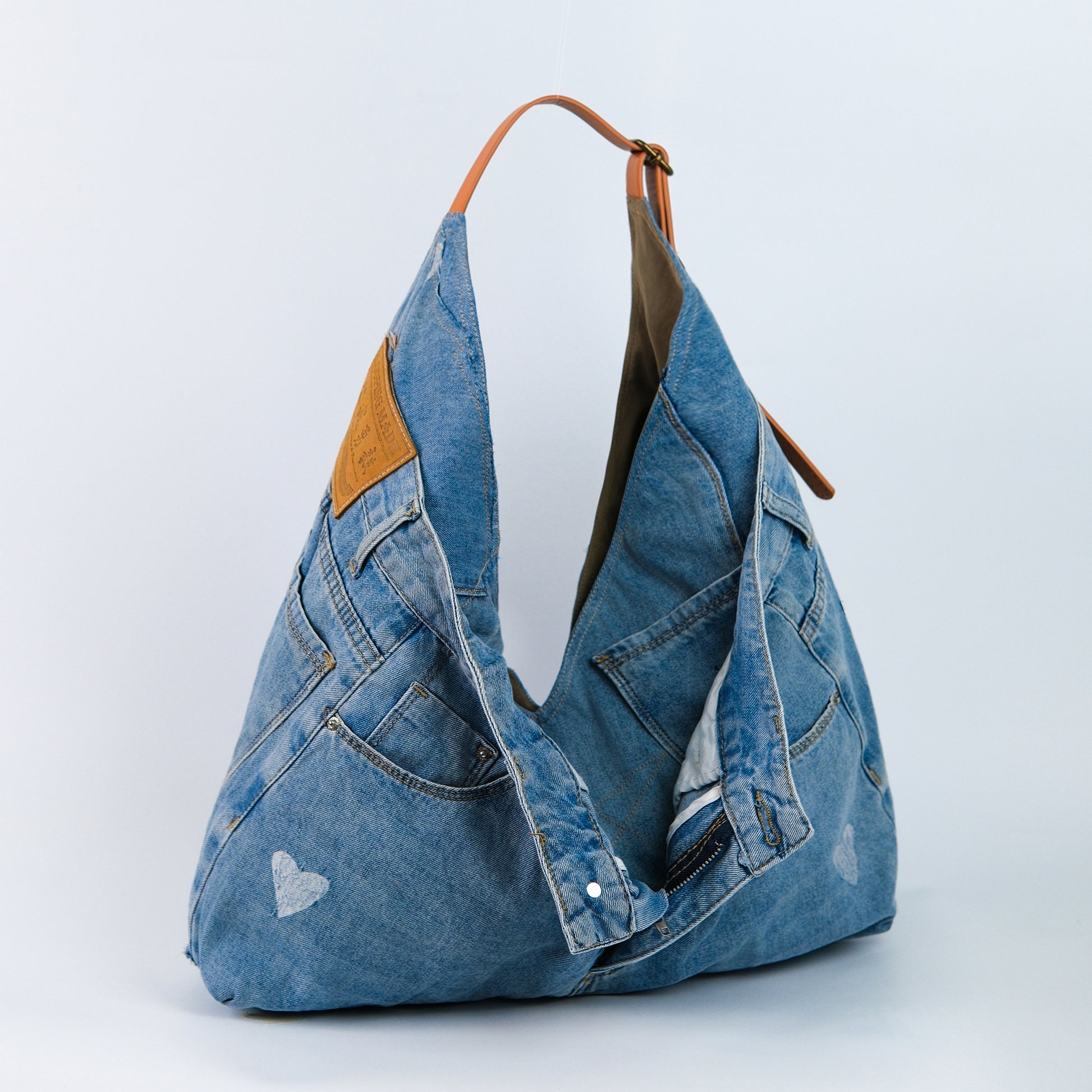 - 材质:回收材料+牛仔裤